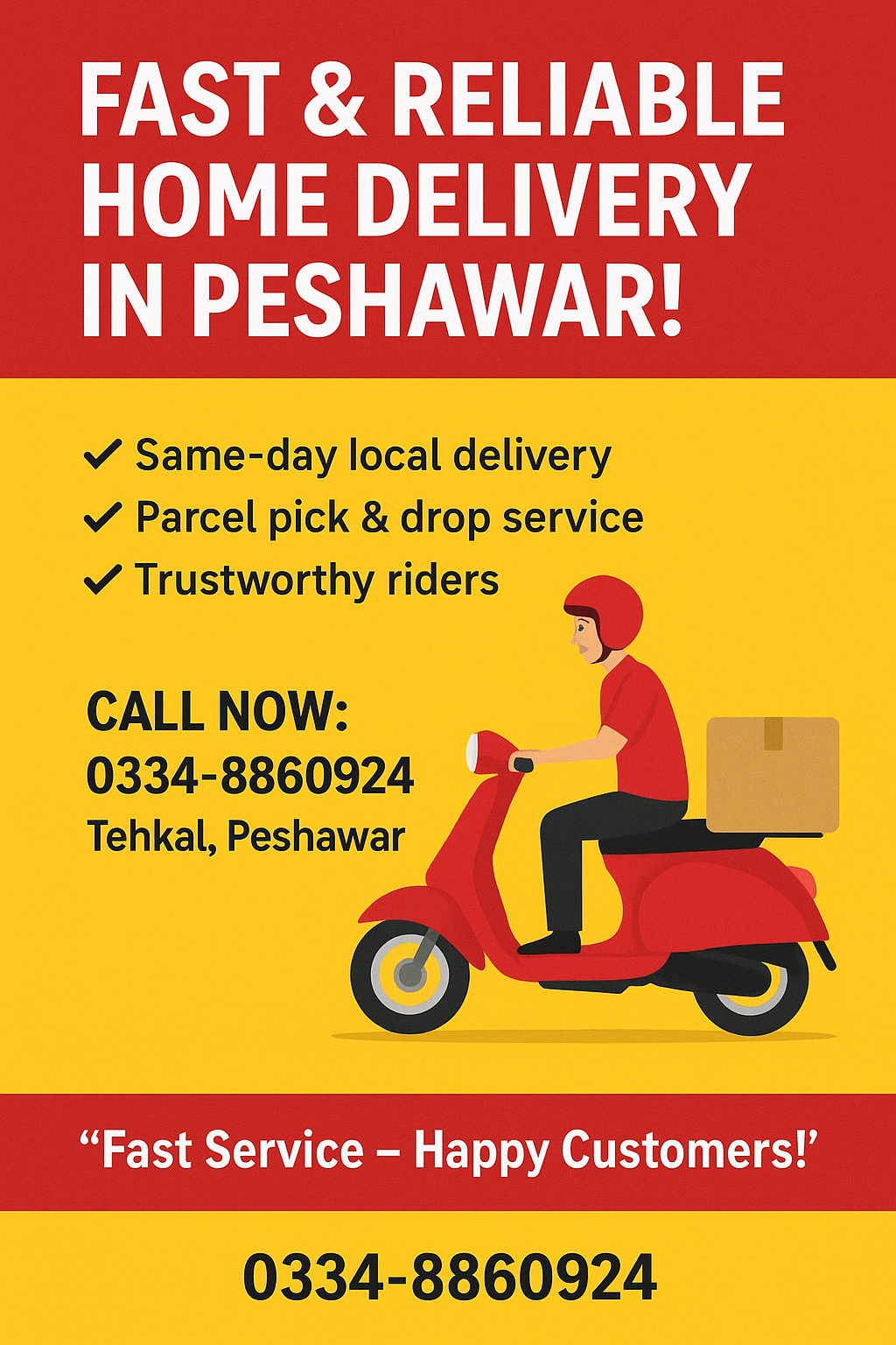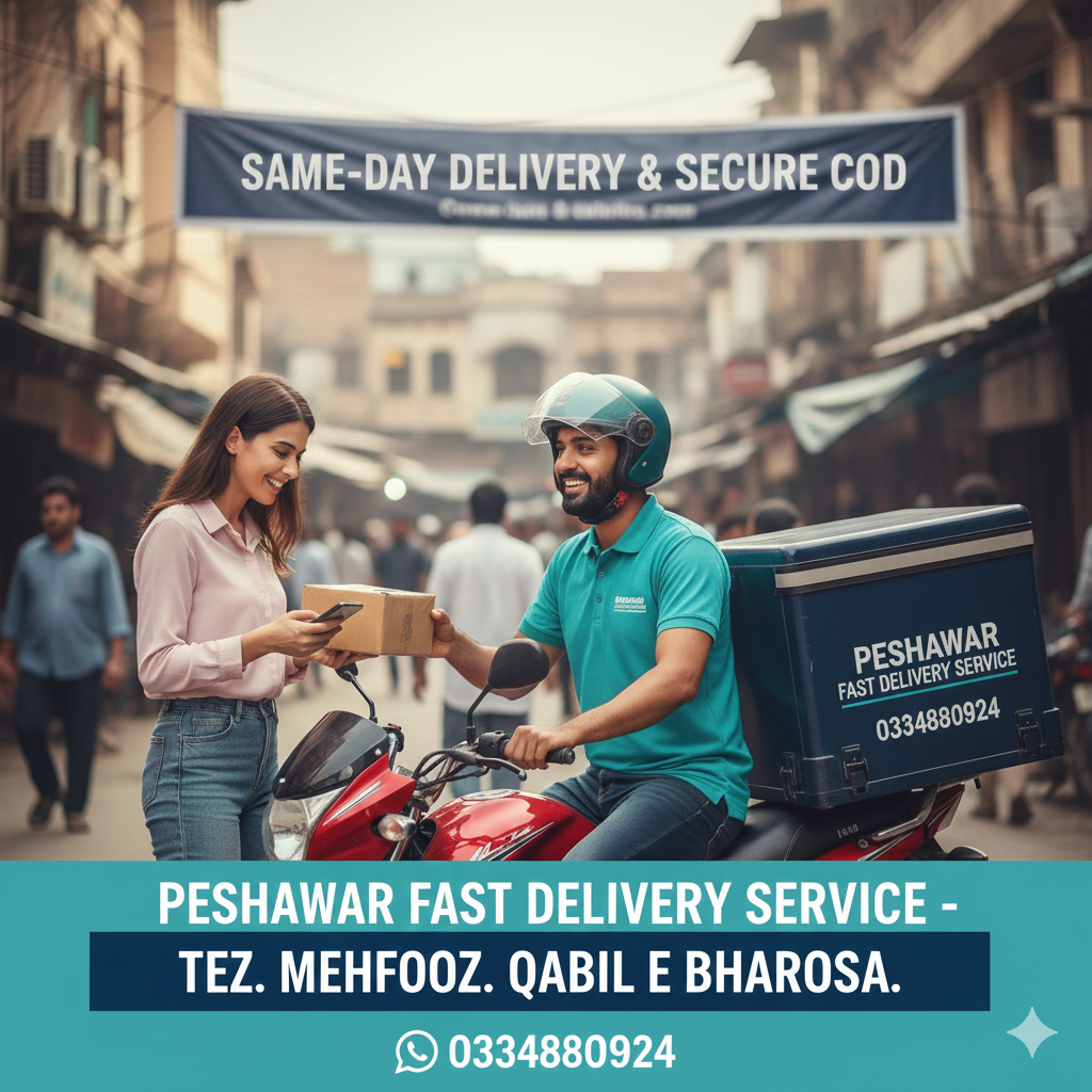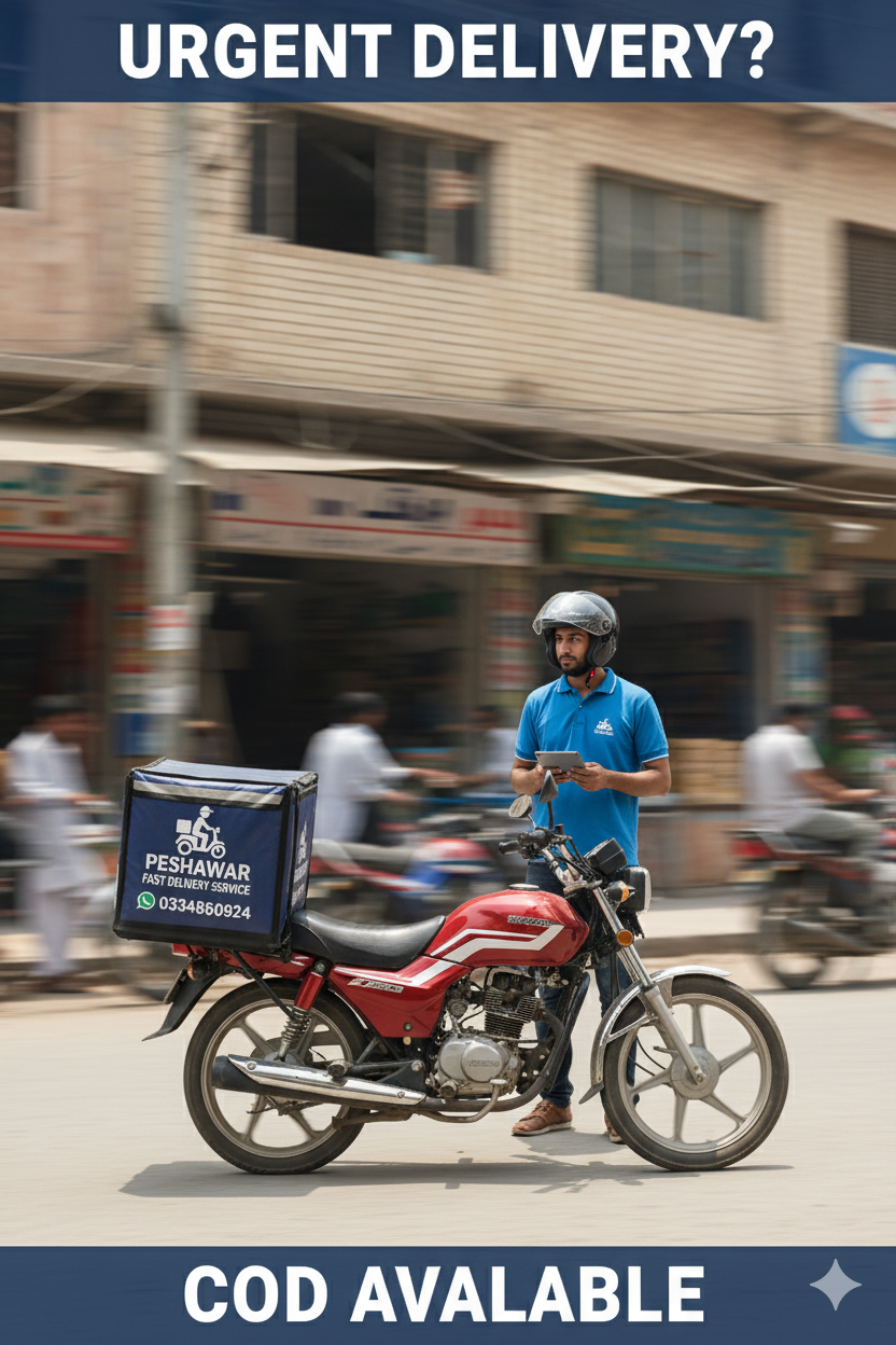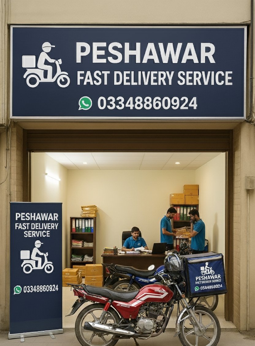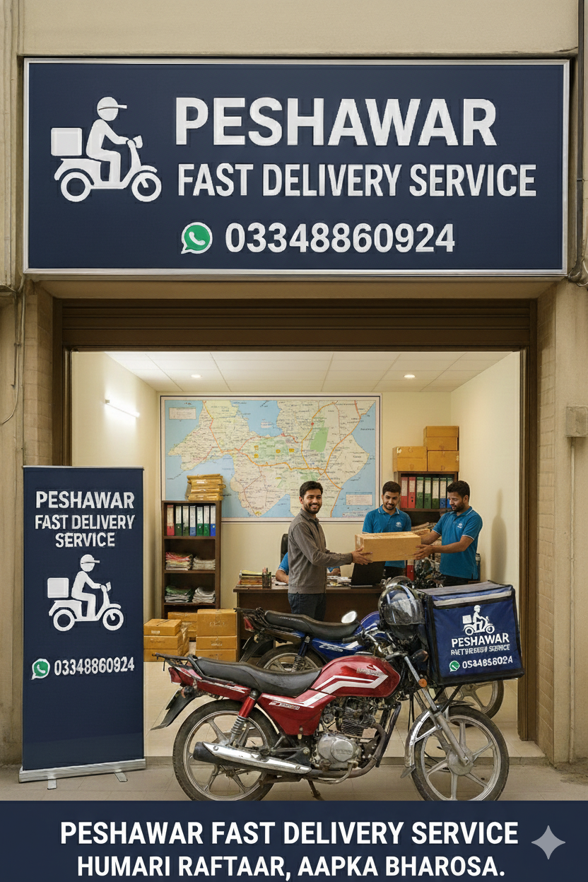 Peshawar Fast Delivery Service Reliable, Affordable & 24/7 Available Peshawar Fast Delivery Service is the most Reliable Courier Service in Peshawar, offering guaranteed Same-Day Delivery for documents and parcels. We specialize in fast and secure E-commerce Logistics and provide the best COD Service (Cash on Delivery) in the city. Our professional team ensures quick service and careful handling for all your Urgent Delivery Peshawar needs. Call us today for the fastest service! All over the Peshawar university road hayatabad Warsak road Nasir Bagh road Ring road